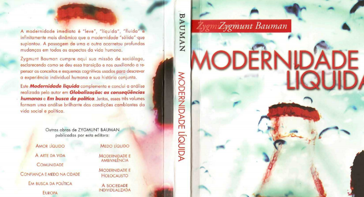 A Modernidade é líquida porque está em clara oposição à modernidade passada, sólida (fordista), na qual os postulados não são mais fixos, os relacionamentos não são mais duradouros, as verdades são transitórias. O que é líquido toma a forma de onde se encontra, evapora, mas também se mistura e assume novas colorações nas suas múltiplas combinações. Momento de transitoriedades, de efemeridades, de trocas, de suspensão.